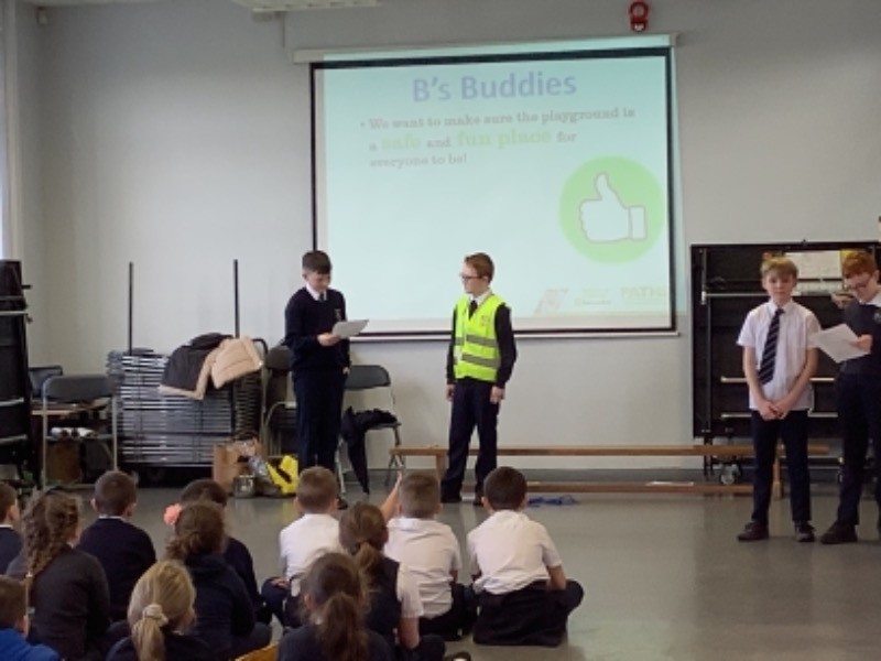 Today Gail from Paths took an assembly on B ‘s Buddies. The P7’s did a role play where the message was how to stay safe in the playground and have fun.