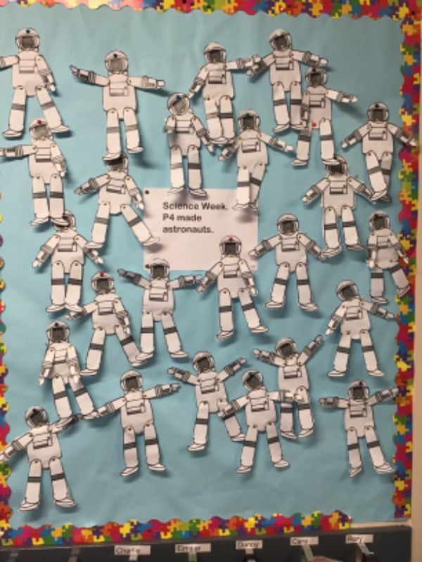 Primary four made astronauts during Science Week. We displayed the finished product.